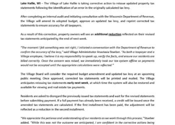 FOR IMMEDIATE RELEASE December 17, 2025 Village of Lake Hallie to Reissue Corrected Property Tax Statements Following Audit and… Read More